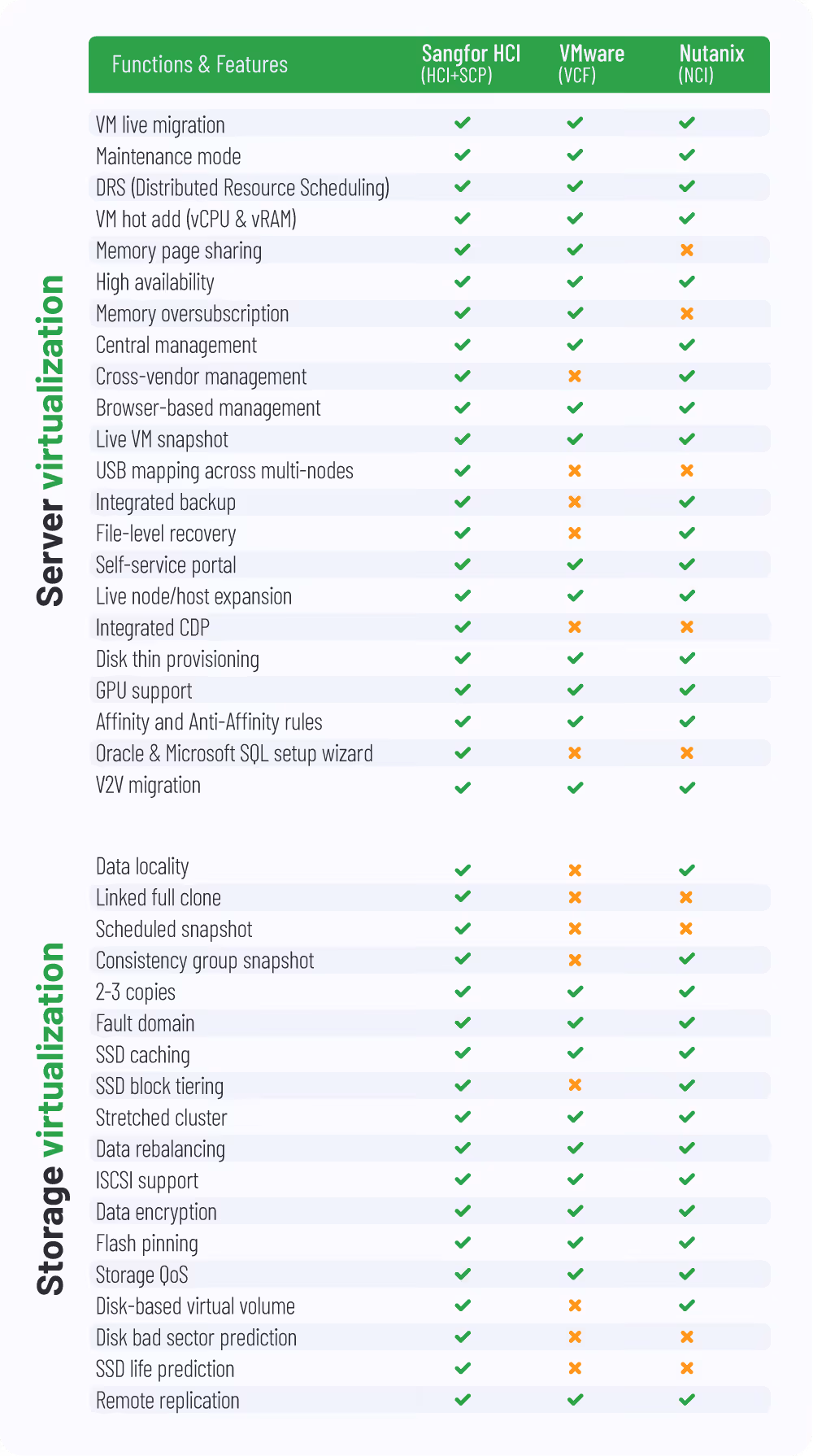 100% dos usuários Sangfor recomendam a solução, contra 75% da VMware